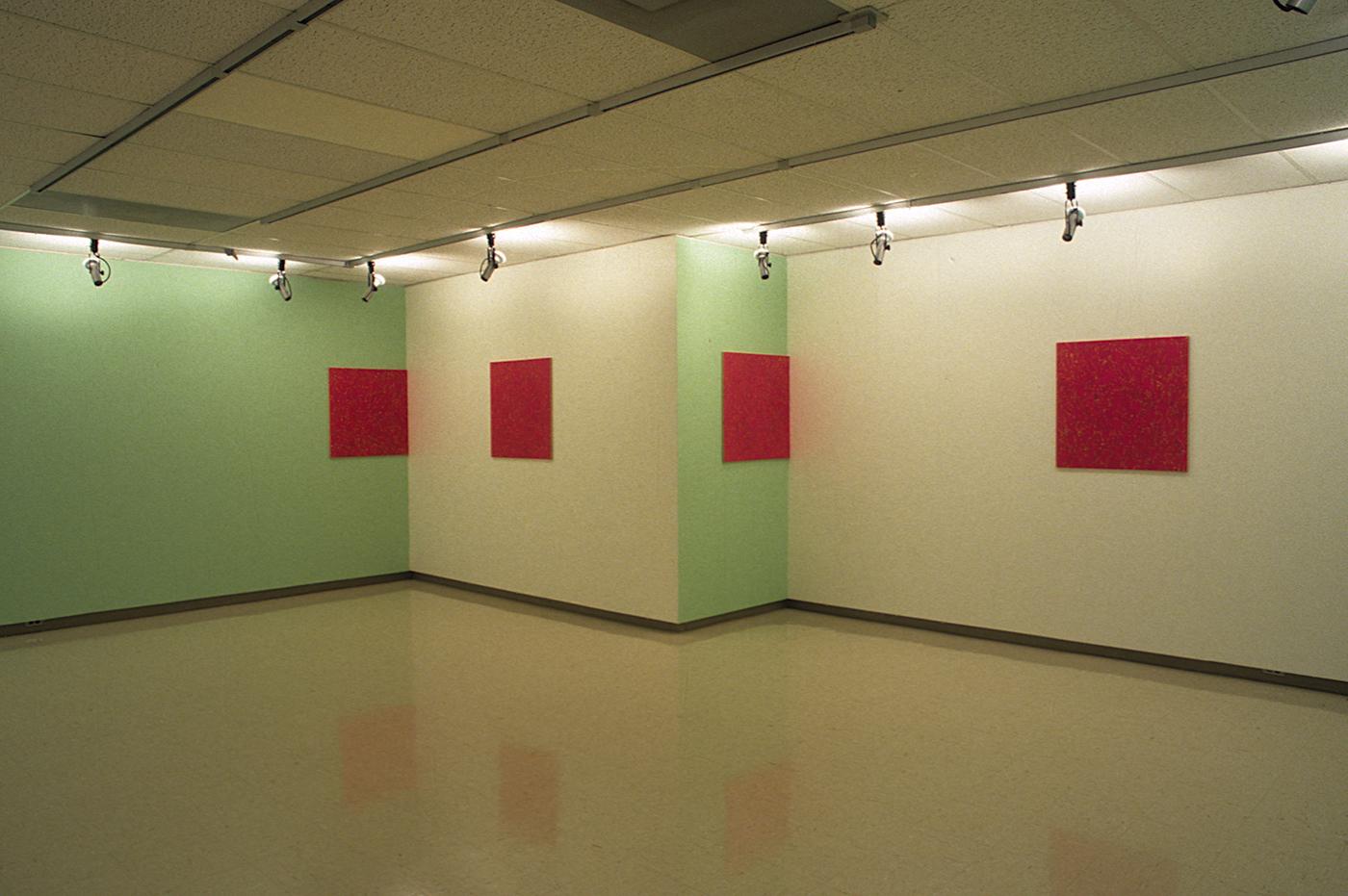 Six Pink Paintings were first exhibited at Cold City (c.1994), then at Owens Art Gallery as part of Garry Neill Kennedy: Wall Paintings and Related Works 1974-1995 (1996), and were included in Kennedy's retrospective, Work of Four Decades (2000), which toured the Art Gallery of Nova Scotia (Halifax), National Gallery of Canada (Ottawa), and Beaverbrook Art Gallery (Fredericton, NB).