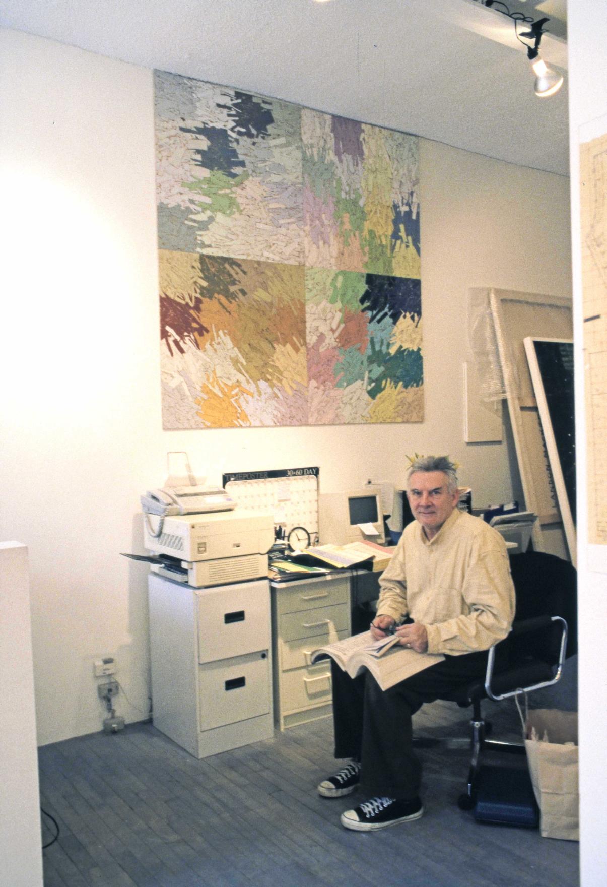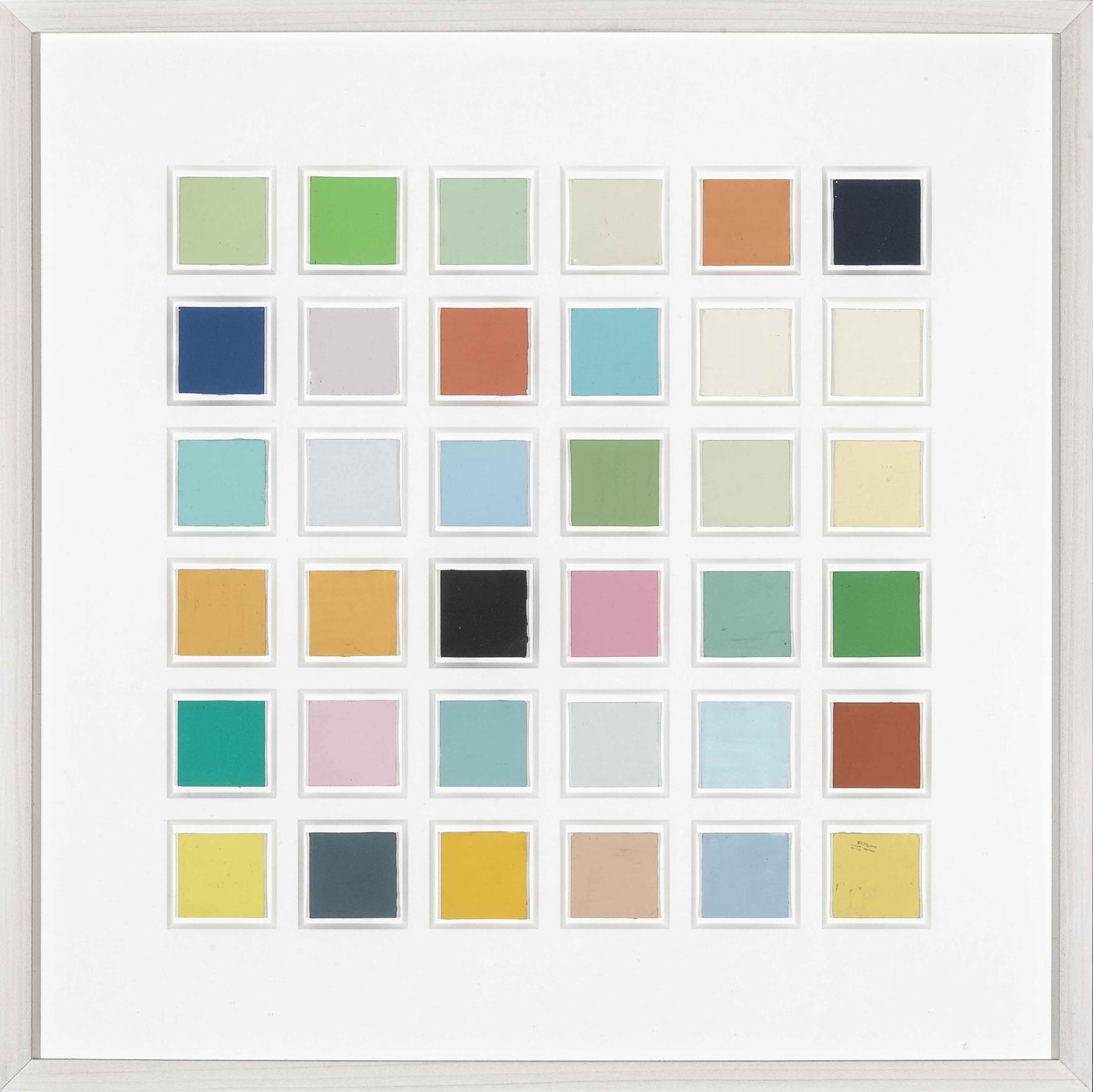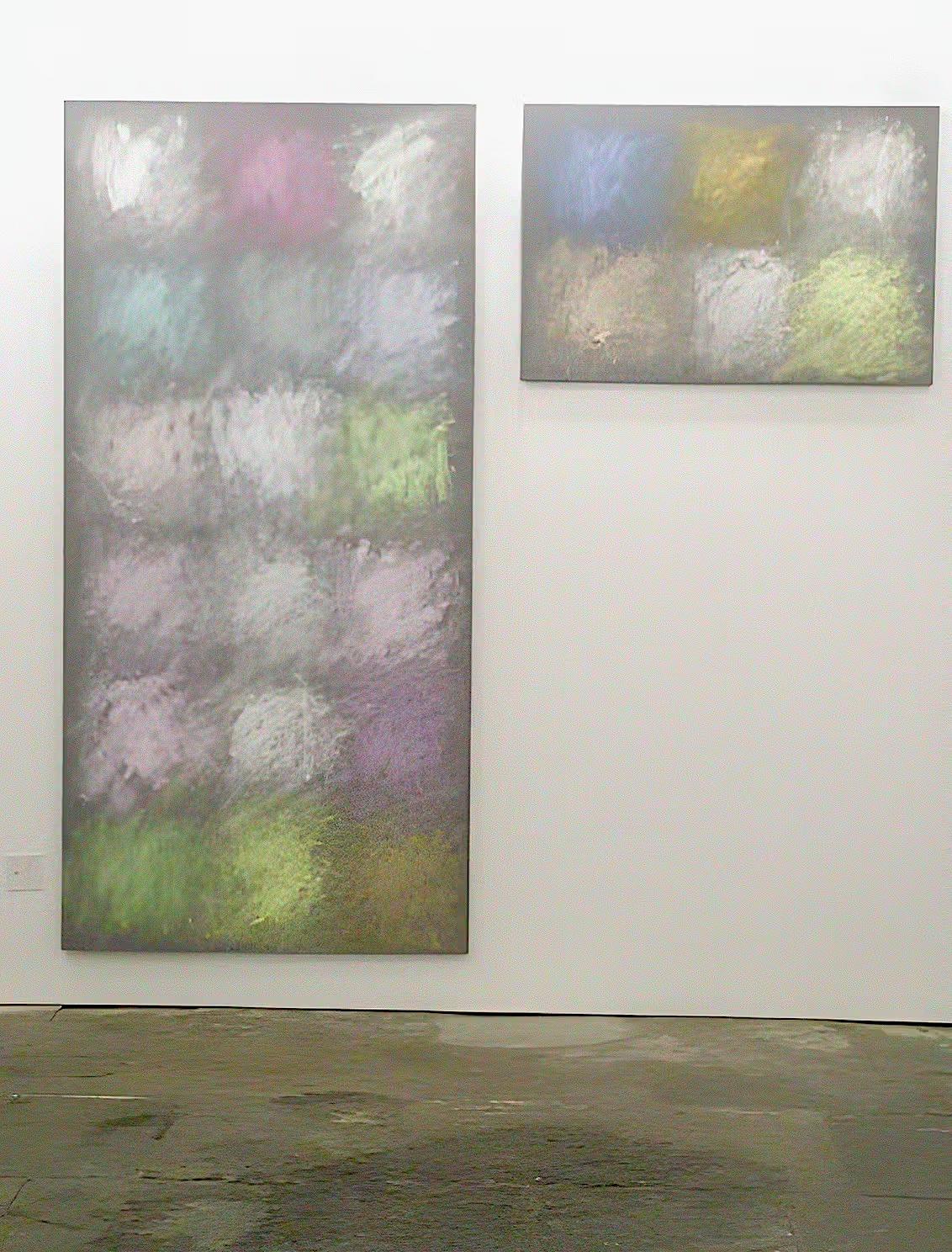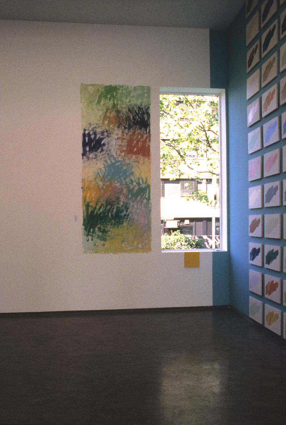 Part of Kennedy's exploration into the logic of commercial paint names, THE FOUR SEASONS is a series of paintings determined by the "seasonal" names of various colours. For this work, Kennedy utilizes a selection of colours from various house paint brands, creating one work per season using colours such as "April Mist" or Green Bud" for his spring painting, and "Autumn Gold" or "Fallen Leaves" for the autumn piece. Kennedy created multiple iterations of this work between the mid-1990s and early-2010s; including site-specific wall-paintings, canvas works and paintings on chipboard and pinstripe suit fabric.