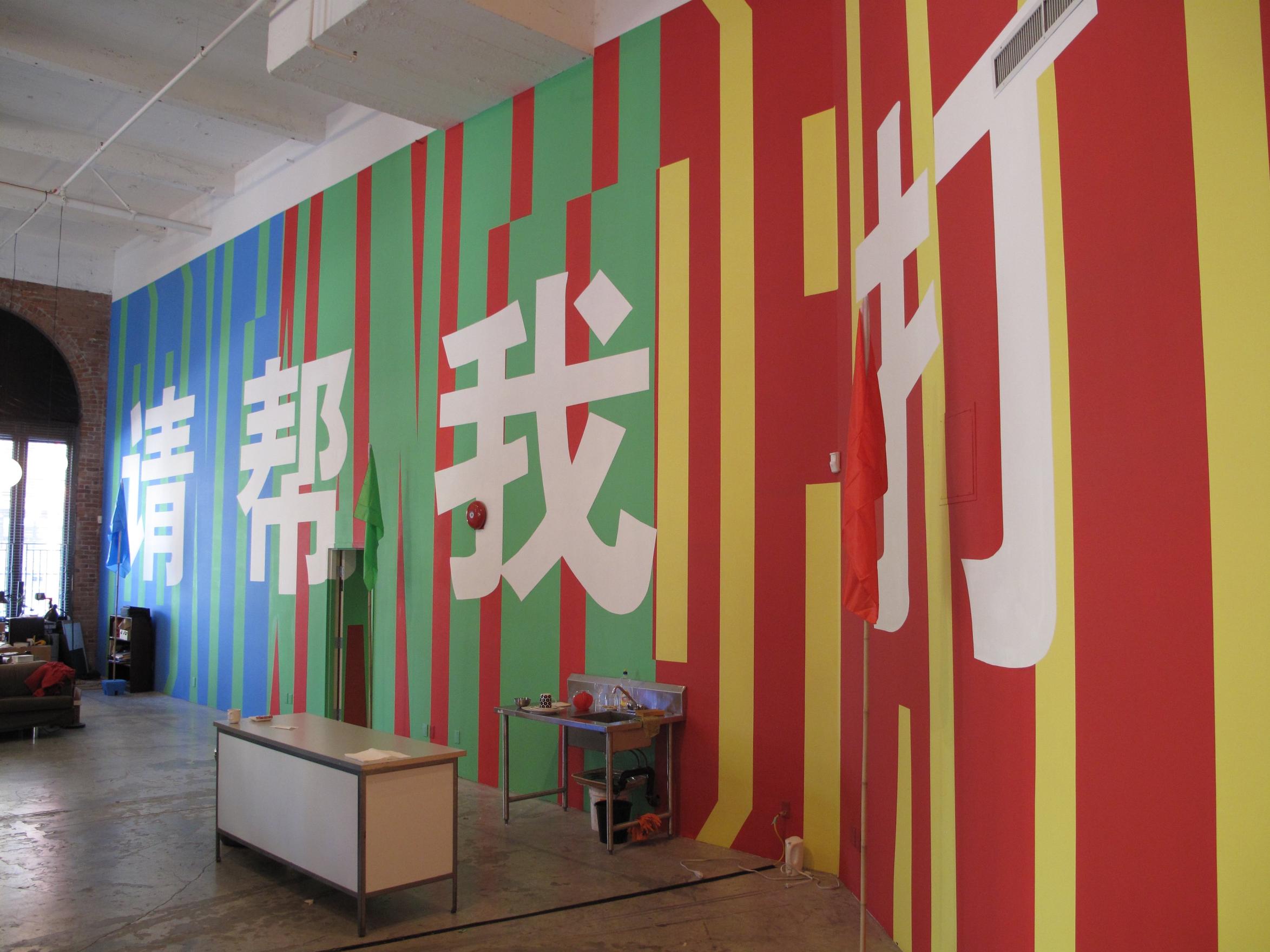 Kennedy's large scale wall-text painting, I DON'T WANT TO PAY THE FULL PRICE, and his wall painting, THE EIGHT BANNERS (a Chinese History Painting), came out of a two-part artist residency he did alongside Cathy Busby, hosted by the Red Gate Gallery in Beijing, China, between 2007-08.