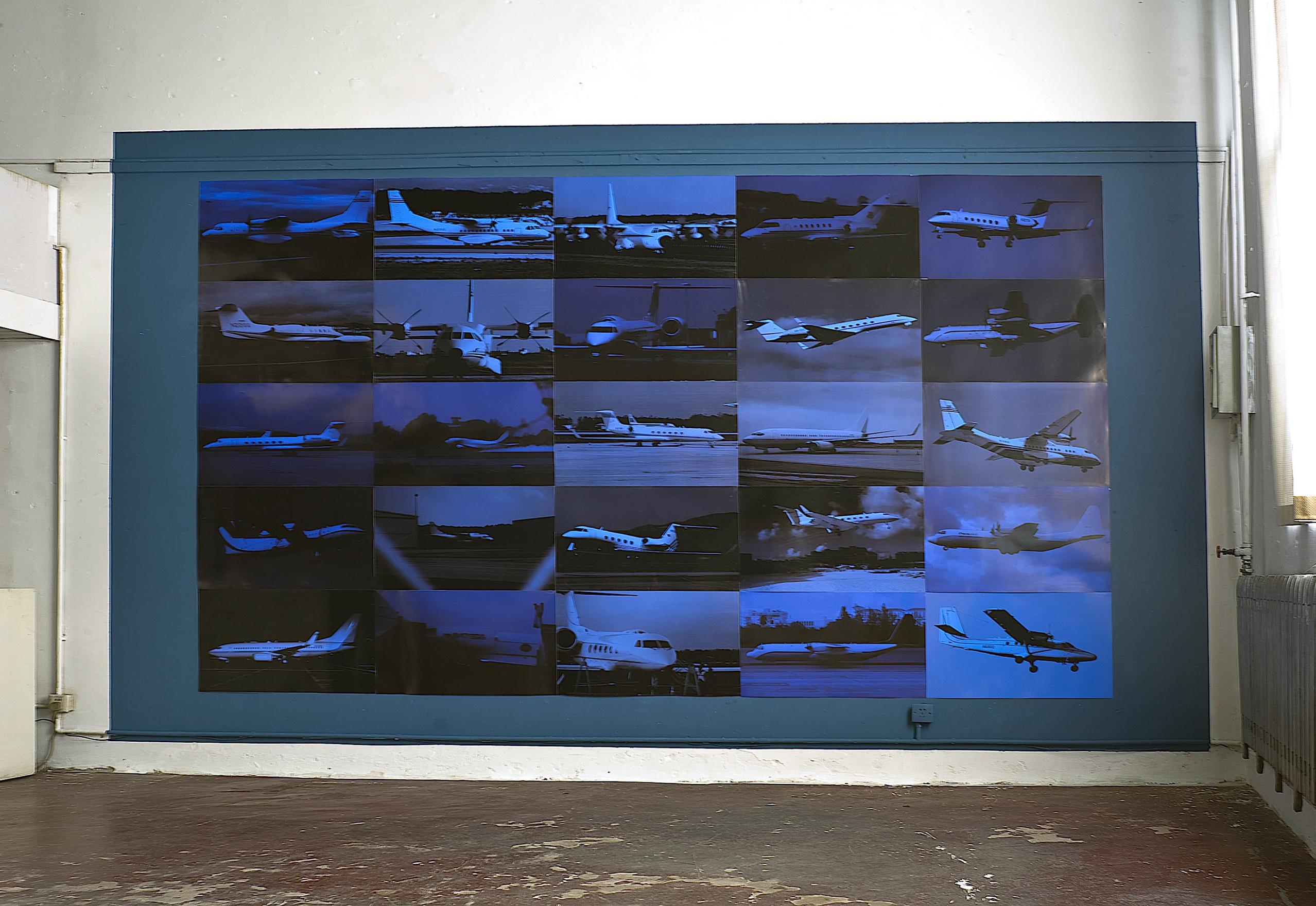 SPOTTED is a photographic wall-painting work which Garry Neill Kennedy developed between 2009-2012 during the height of the Global War on Terror. In this work Kennedy gathered photographs of the U.S. Central Intelligence Agency’s (CIA) "extraordinary rendition" planes from public archives of images taken by plane spotters from around the world. By using the planes' ID numbers, which were made available by human rights groups, Kennedy was able to identify and collect images of the specific planes that were a part of the CIA's rendition program to create his large scale installation.