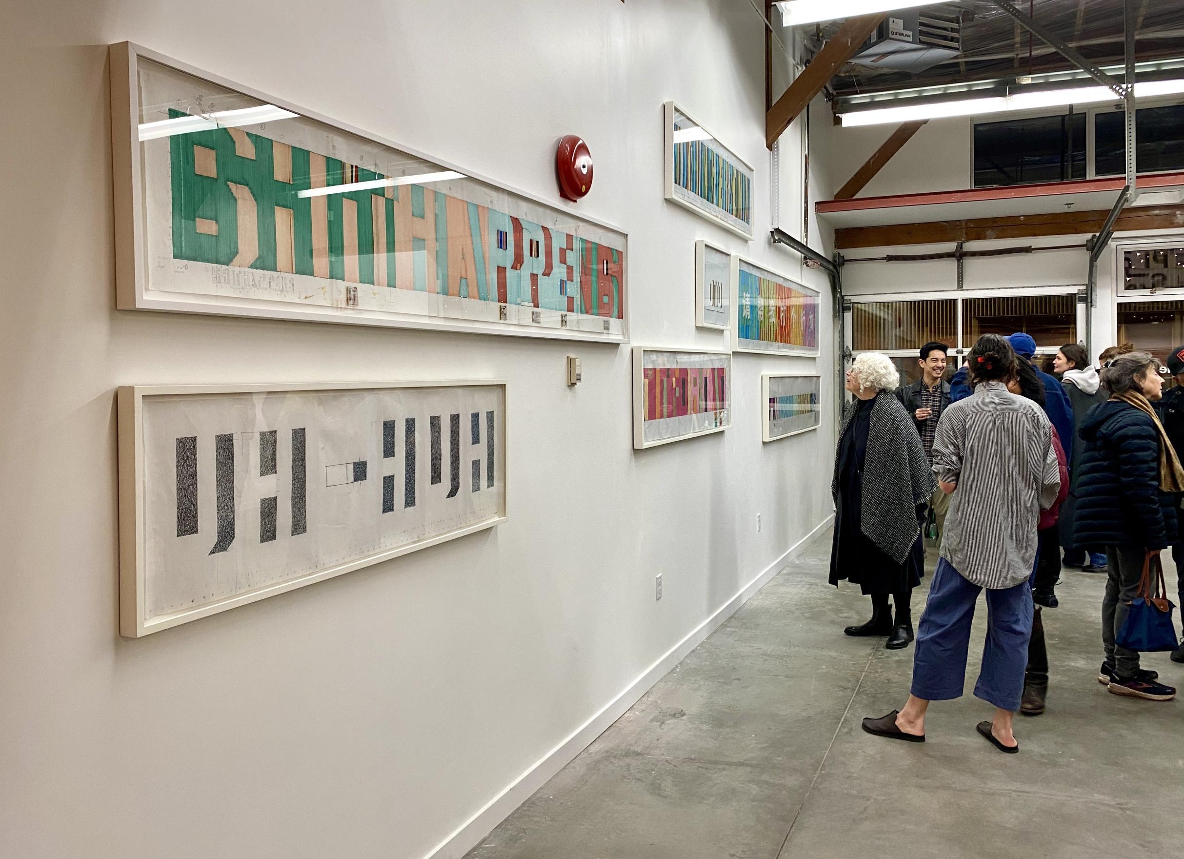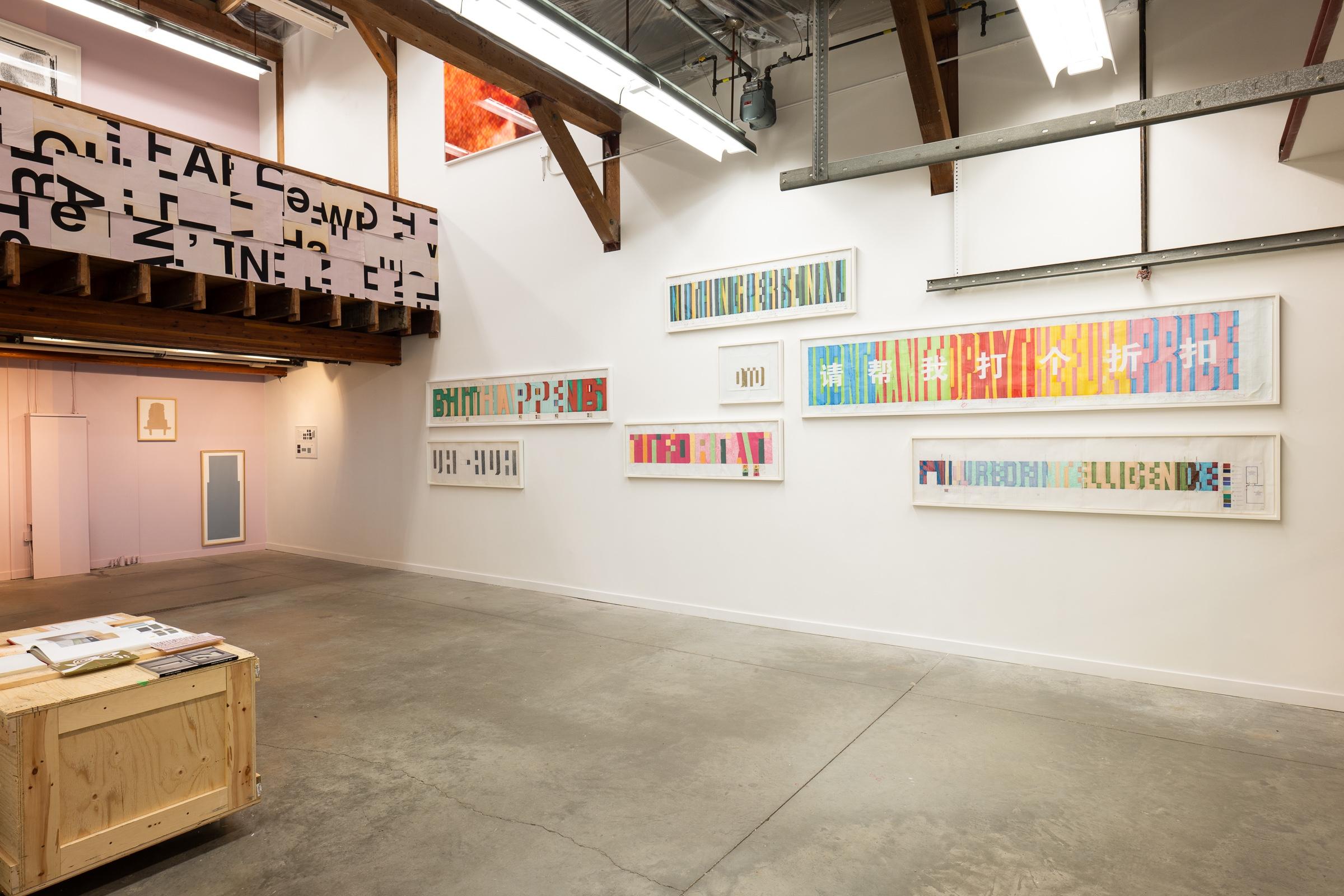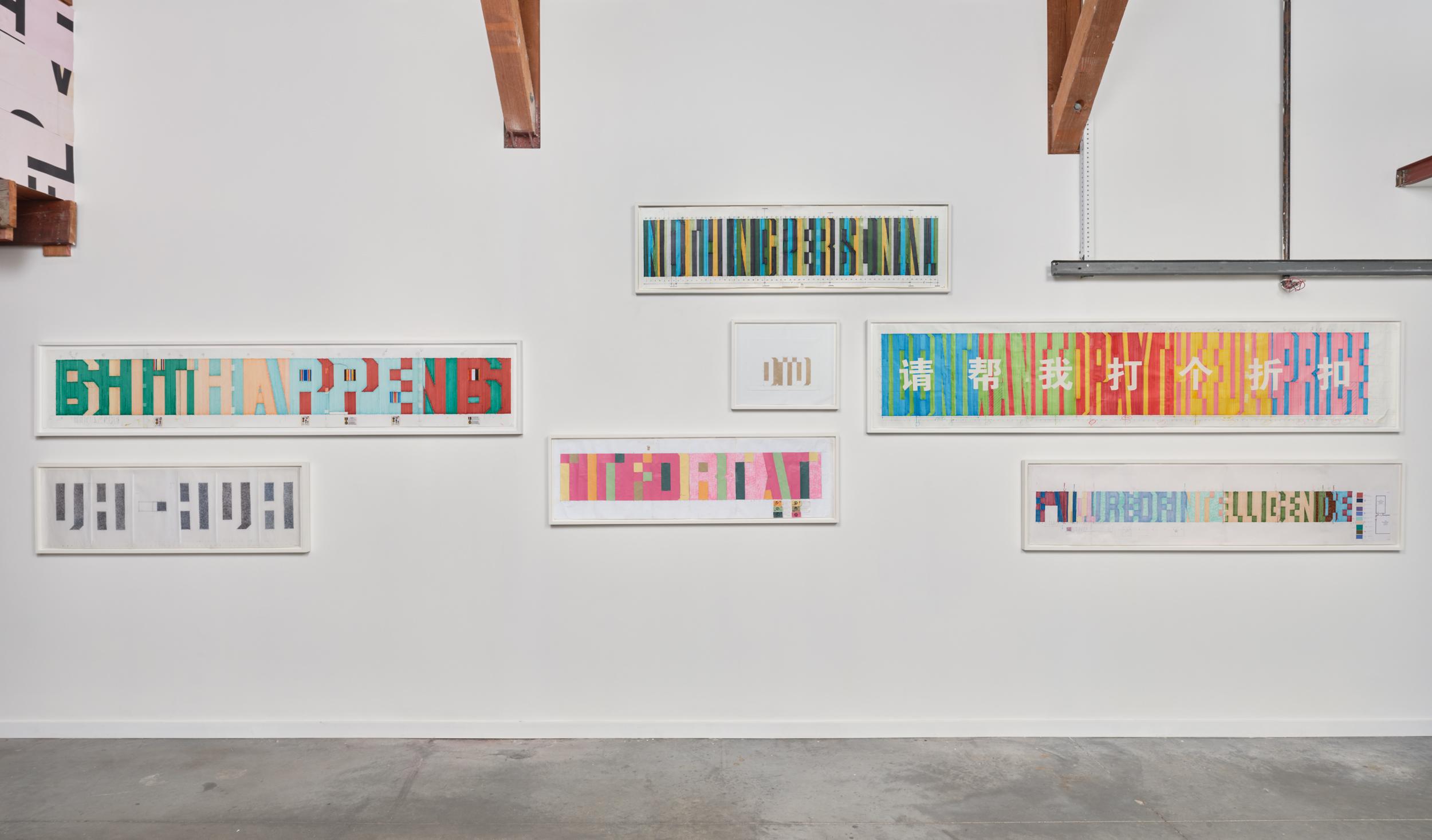 Kennedy’s working drawings were used to create his monumental wall-text paintings (1992-2009), enabling him to precisely integrate them with the architecture of the site.