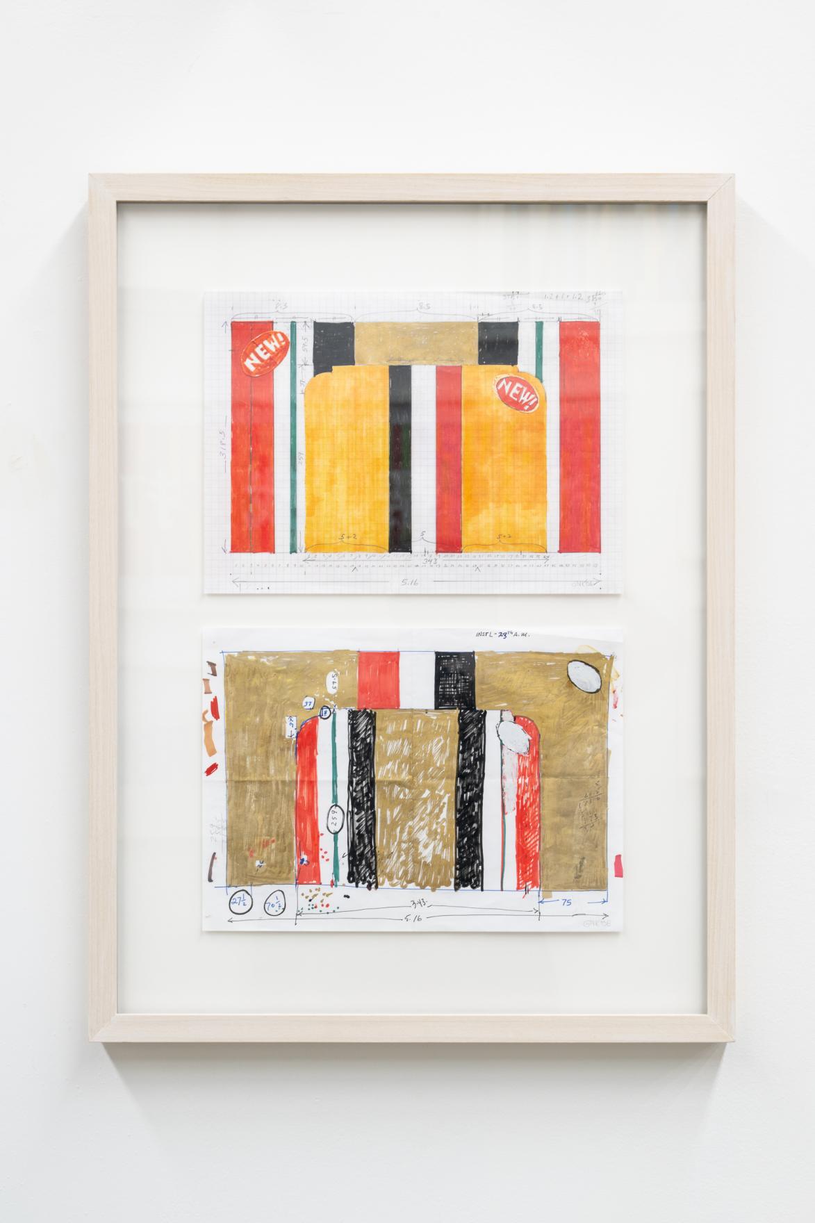 While installing, Kennedy would keep these scale drawings close by, often tacking them up for easy reference while he and his crew measured, taped and painted. Now, as artifacts, they provide a window into the reasoning and artistic logic underlying these iconic works.