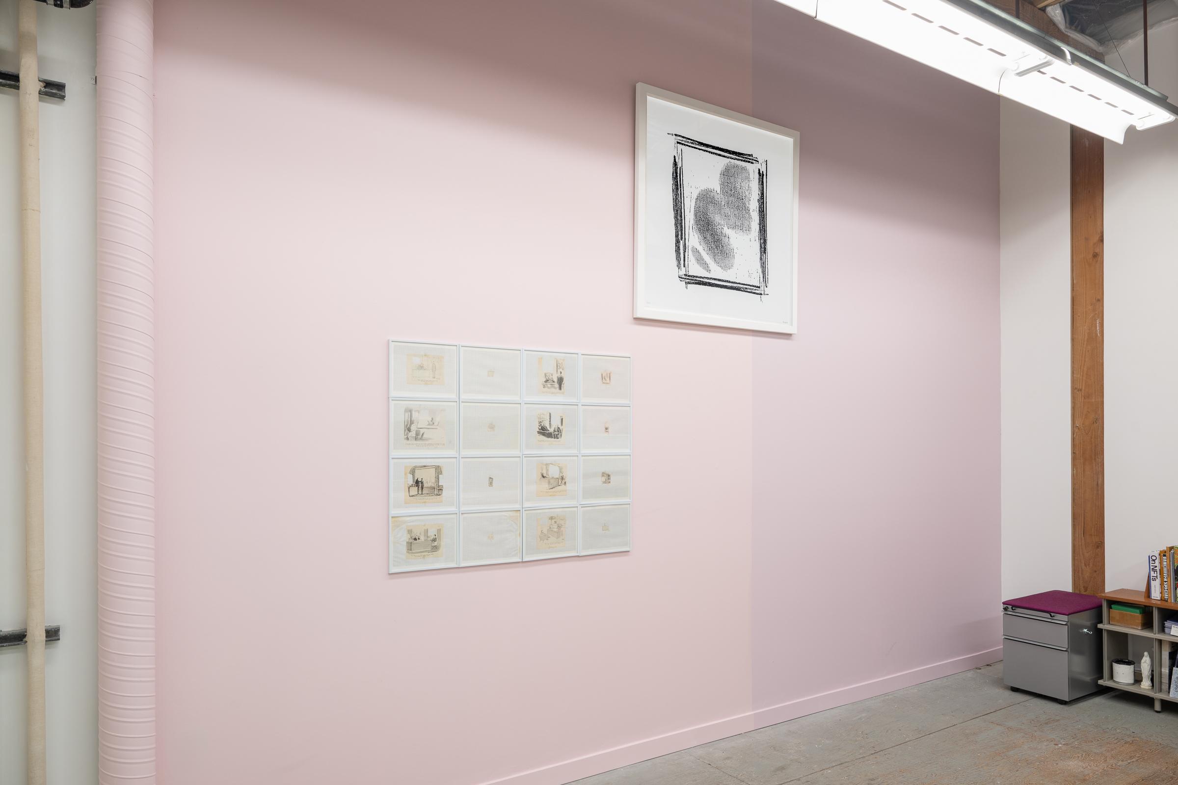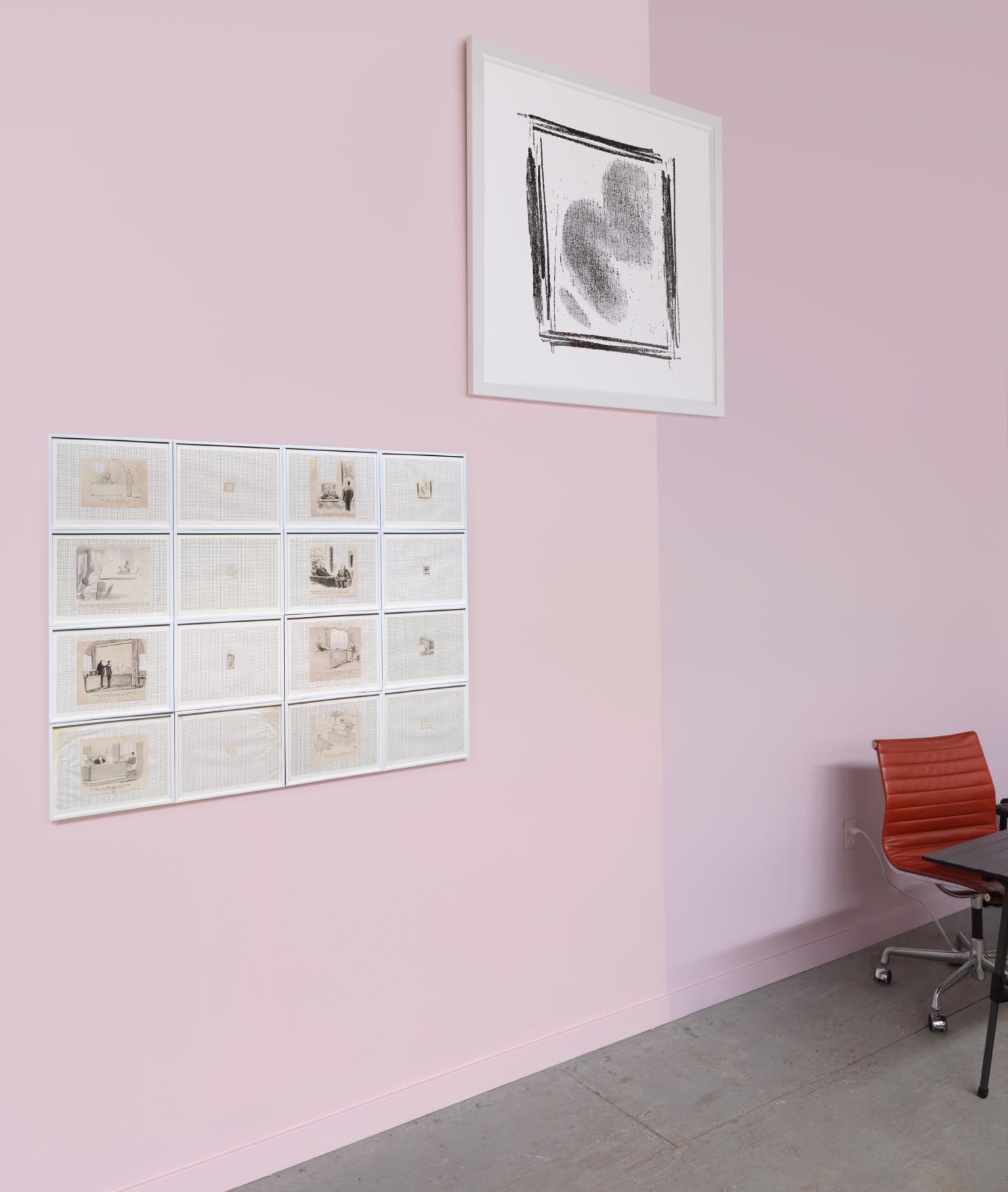 He went on to make a suite of nine SEIZED serigraph prints, entitled, EXECUTIVE SUITE (38" x 38", 1991). This work is part of Kennedy's larger body of work about the workplace and administrative dynamics. One of these prints, a large-scale schematic of the artwork lifted from the boss’ office, was on display alongside Kennedy’s original hand-cut drafts of both SEIZURES and SEIZED.