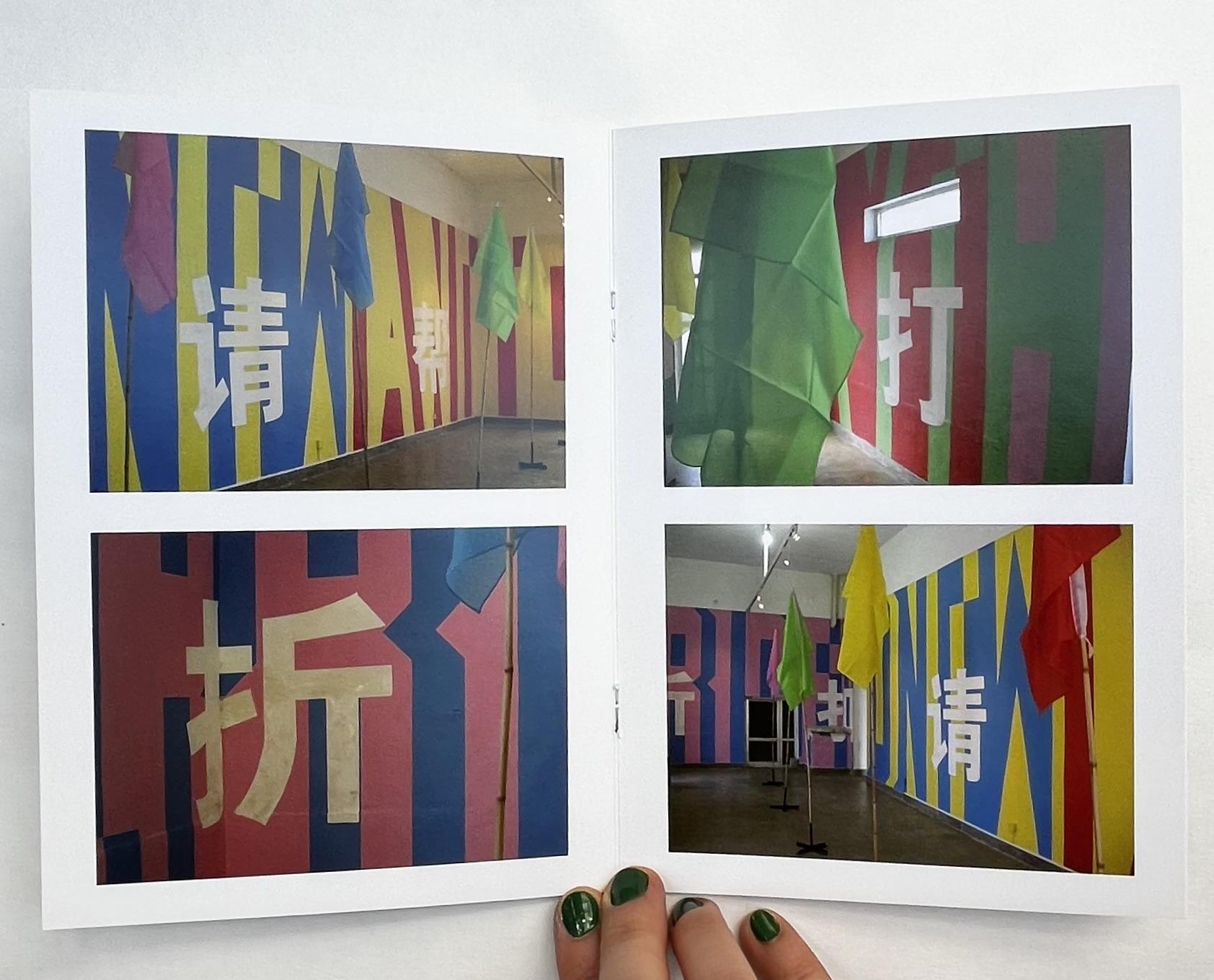 Like many of my works 'I Don't Want to Pay the Full Price' is open-ended and remains without explanation. It developed from the installation I did last year at the Pickled Arts Centre entitled, 'The Eight Banners: A Chinese History Painting' — a room painting in bright reds, yellows, blues and white. That work recalled the banner system introduced by the Qing Dynasty (1644-1911) to structure their control of China both administratively and militarily. This year's work focuses on the current dynamic economic intertwining of China and the West that grew out of China's 'Socialism with Chinese Characteristics' and Western free-market capitalism."