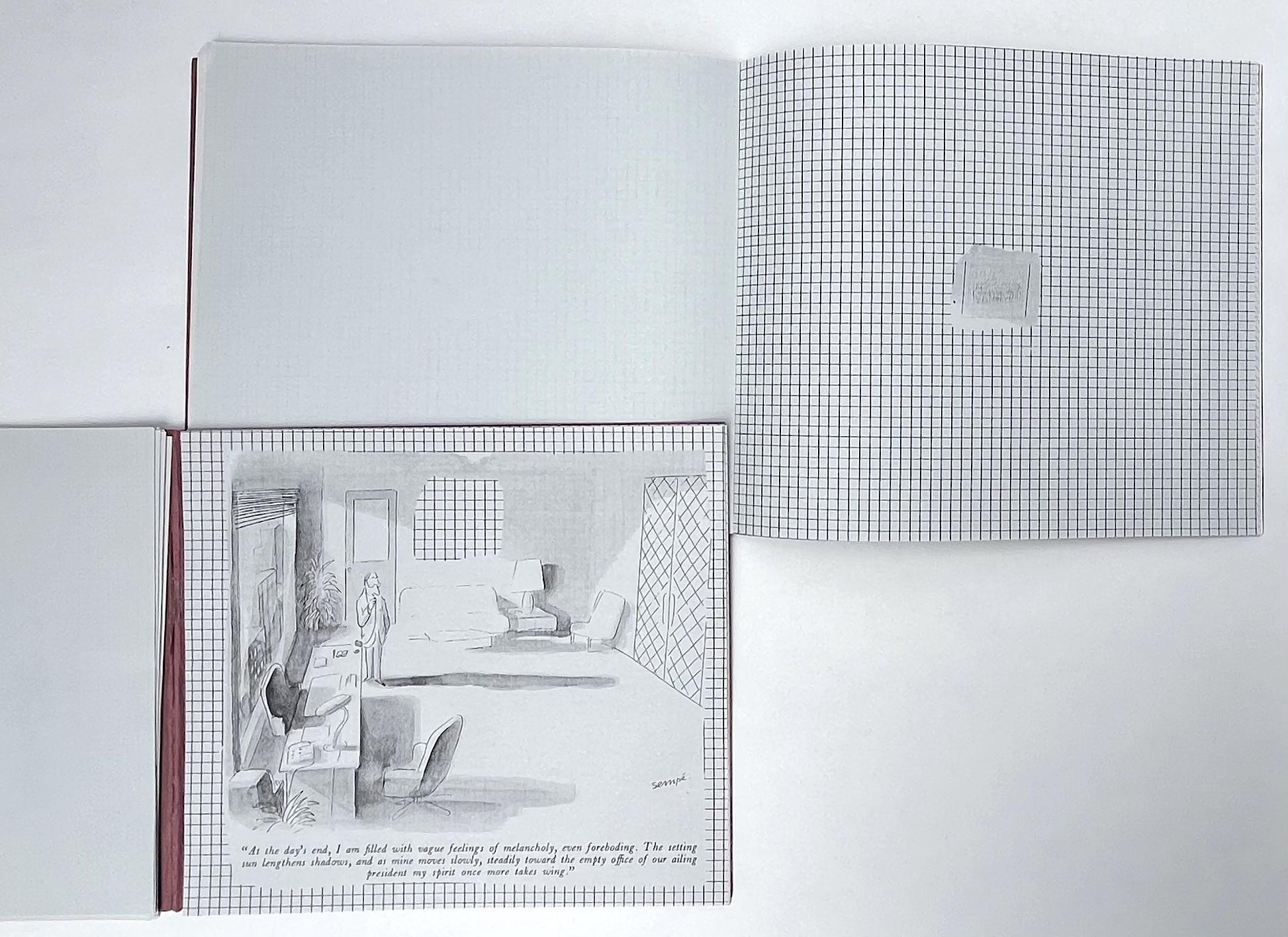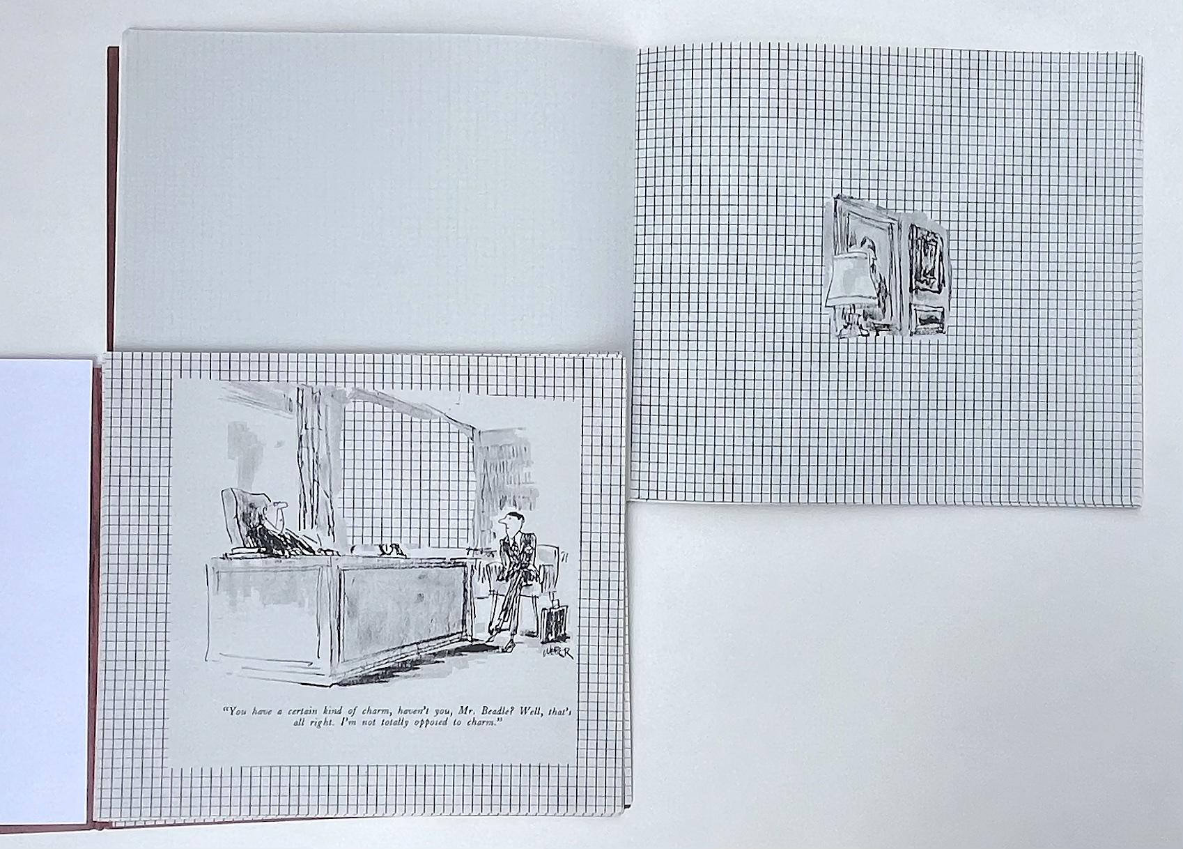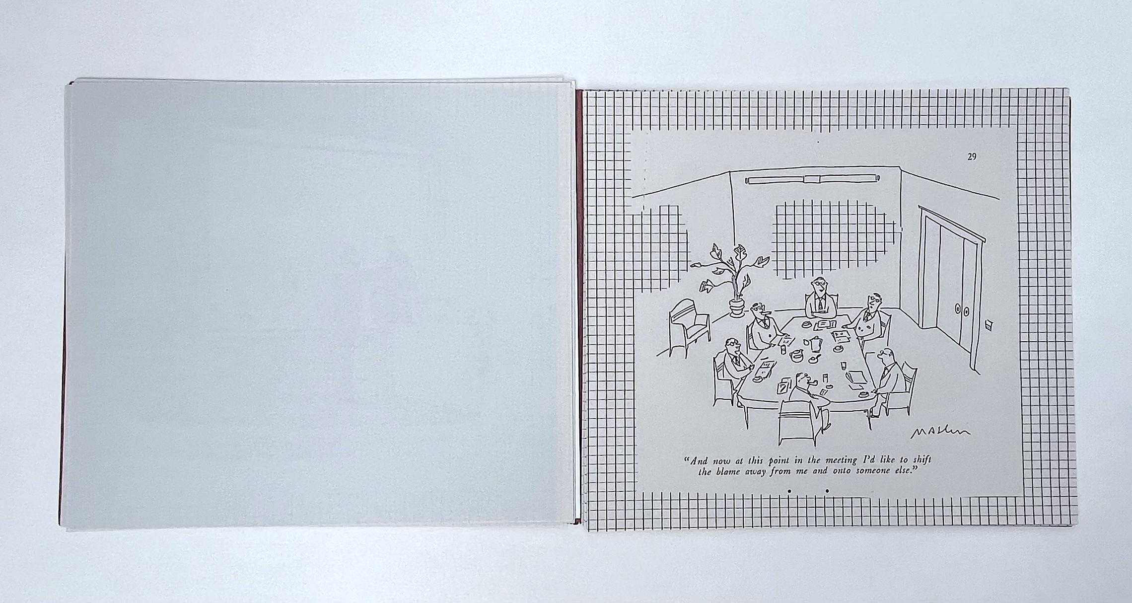 In 1991, Kennedy was gifted a large collection of Saturday Evening Post, Collier’s and The New Yorker magazine's from which he began pulling cartoons that took place in the boss’ office. For Seizures, he re-printed a selection of these boss's office cartoons with all the art removed from their walls. He then printed just the boss' lifted paintings in Seized.